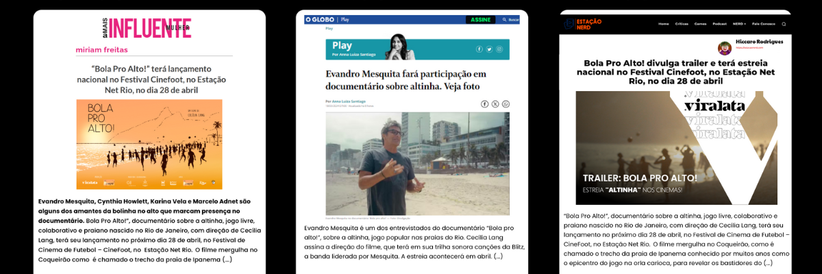 Estamos em contagem regressiva! Nesse domingo, dia 28/04, o filme Bola pro Alto! terá o seu grande lançamento ao público nas telonas do Estação Net Rio, no Rio de Janeiro.
